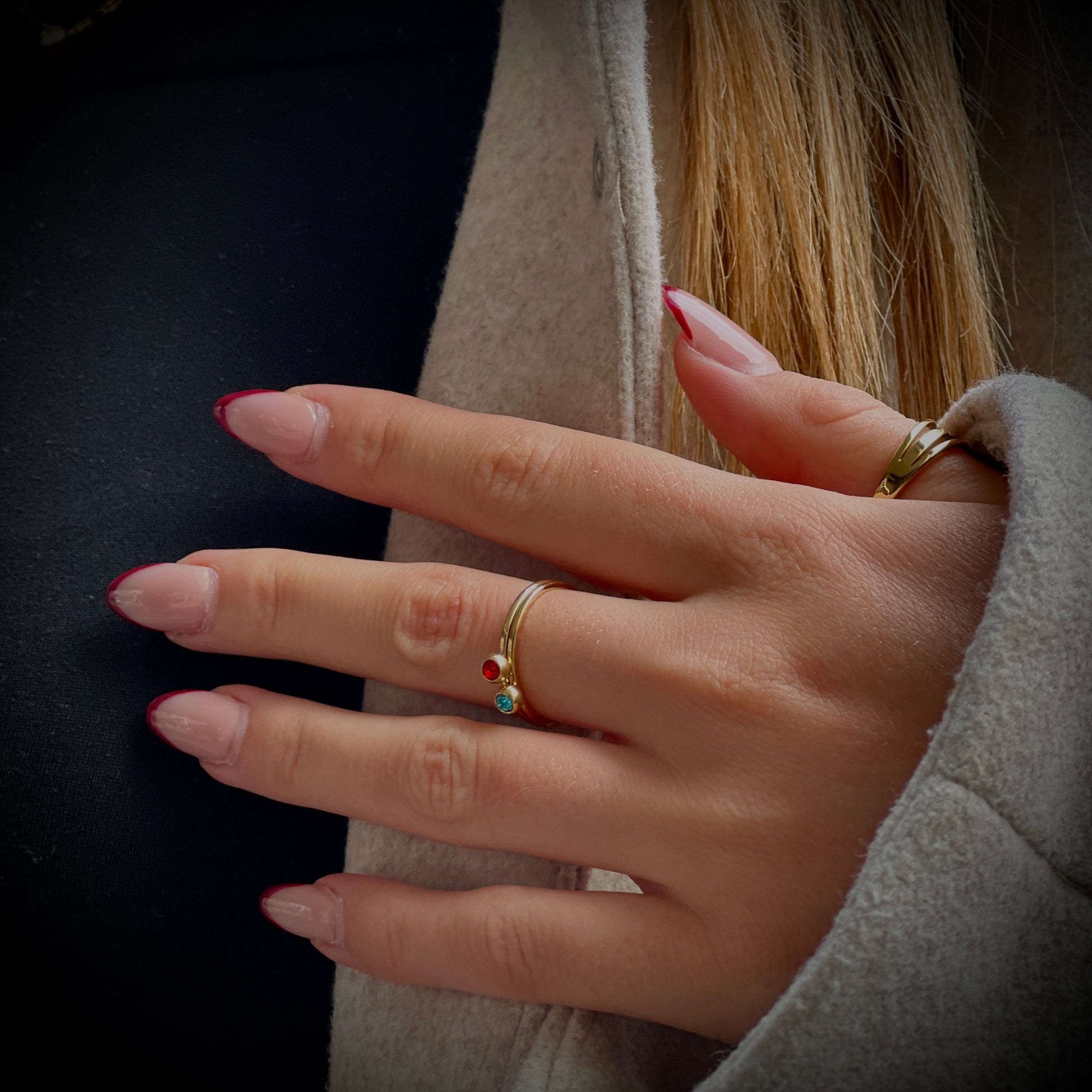18k gold plated with Swarovski stones — waterproof and chic. Wear them solo or stacked, these three rings instantly elevate any look.