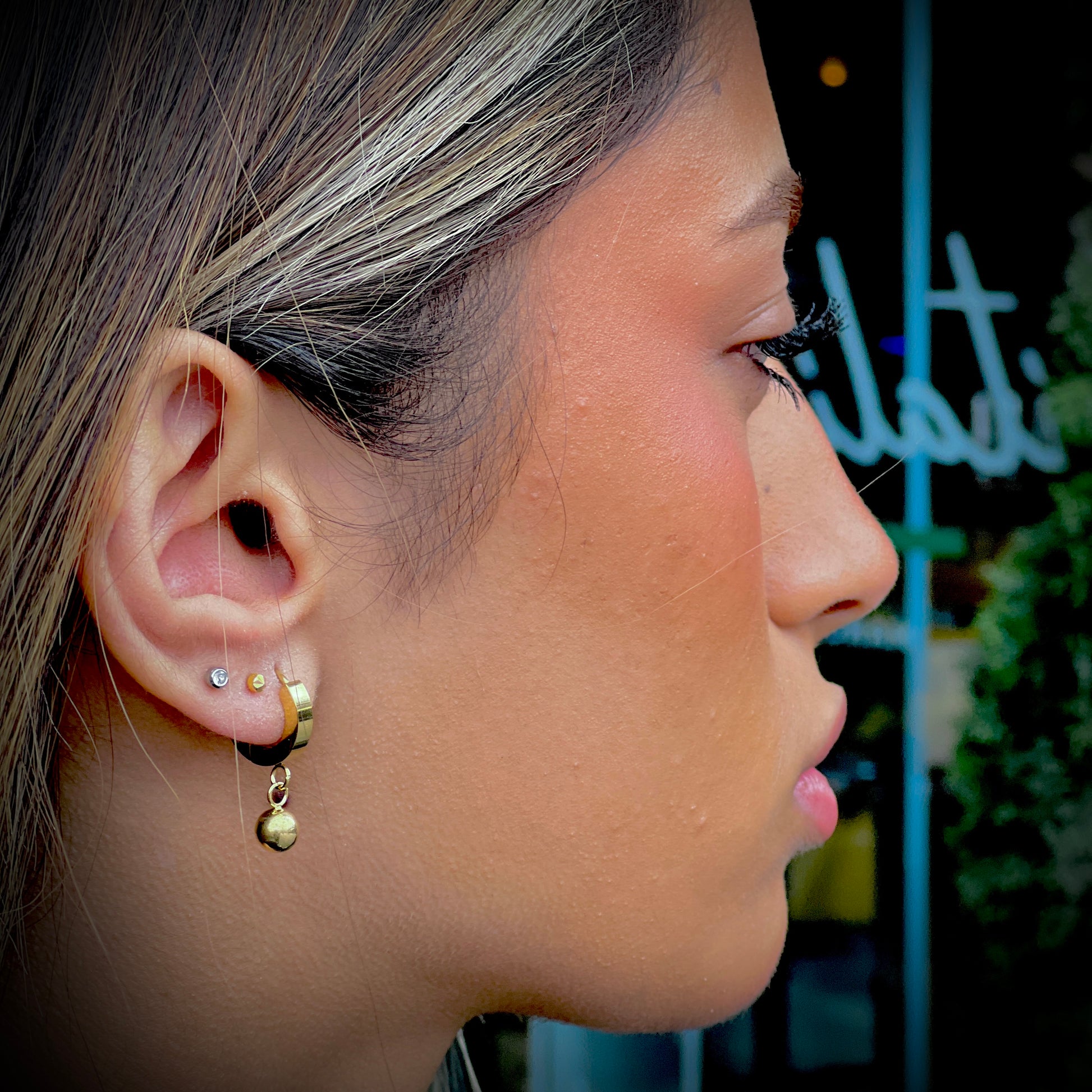 Gold plated mini drop hoop. Perfect for everyday and one of the best sellers. Suitable for teenagers and adults both. Wear day in or night out!